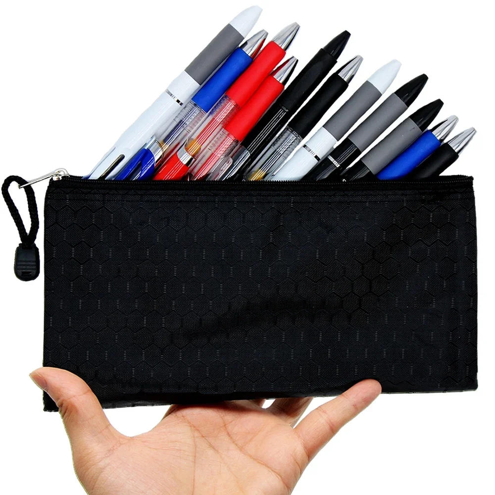 8 Colors Black Grid Pencil Bag Zipper Pouch Bill File Bag Makeup Small Pencil Case Waterproof Office Supplies Travel Accessories
