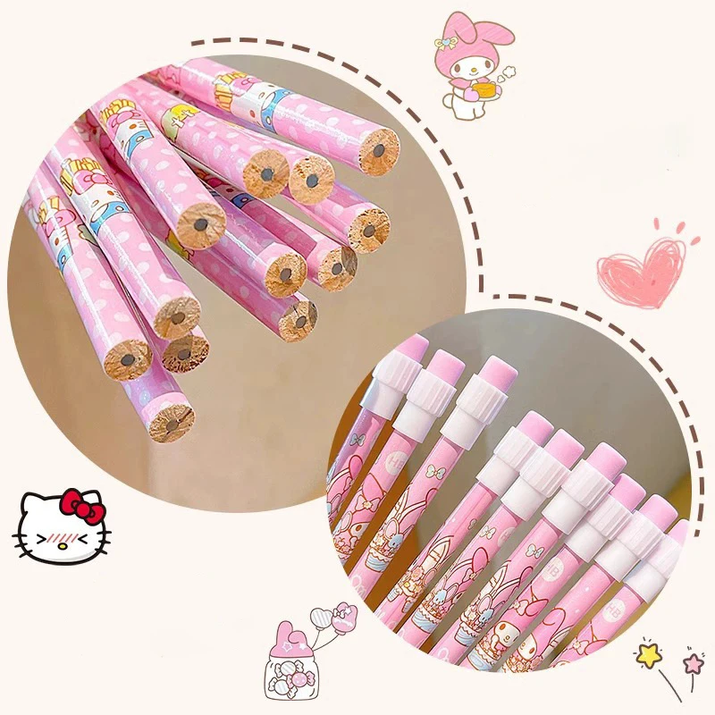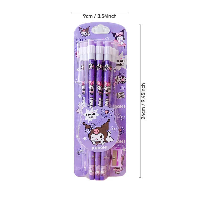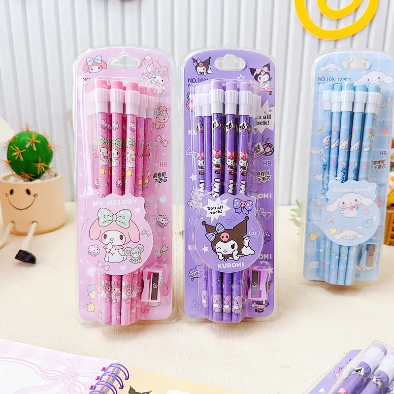 Cute Kuromi HB Pencil 12 Pencil and 1 Pencil Roller Stationery Box Set, Student Writing and Drawing HB Pencil Sketcher